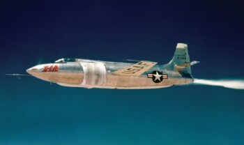 Appareil légendaire, l’avion expérimental supersonique à réaction Bell X-1 a été conçu suite à un appel d’offres de février 1945 émanant de l’US Army Air Force et du National Advisory Committee for Aeronautics, la future NASA. Il s’agissait à l’époque d’un programme d’étude de prototypes propulsés par moteur-fusée ou réacteur, afin d’étudier les problèmes de l’échauffement des matériaux en vol supersonique, une préoccupation vitale à l’époque pour l’Air Force.