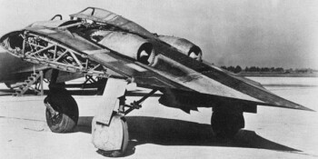 Le Horten IX à réaction était une aile volante n’ayant pratiquement aucun fuselage apparent, la centrale électrique et le pilote pouvant loger dans la partie avant de l’aile. Les moteurs prévus étaient des BMW 003 mais ceux-ci trop imposants on été remplacés par une paire de Junker Jumo 004. La section centrale de l’aile était composée d’une structure en tube-acier pour supporter à la fois le poids du pilote et tout l’équipement du cockpit et les moteurs. Le côté externe des ailes est en bois et en fibre agglomérée, le tout, recouvert d’un enduit spécial pour donner la finition la plus lisse possible.