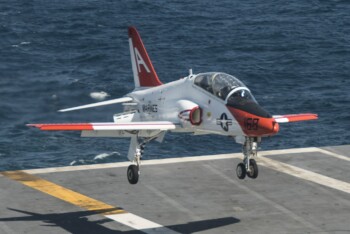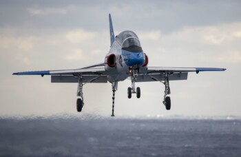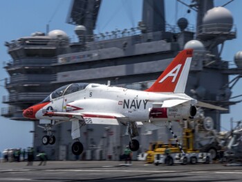 Les opérations d’entraînement sur porte-avions constituent l’aboutissement du cursus T-45, les élèves pilotes effectuant leurs premières qualifications embarquées sur USS Lexington puis sur les porte-avions opérationnels de la flotte active. Ces phases critiques valident définitivement l’aptitude des futurs aviateurs navals aux conditions opérationnelles réelles, consolidant leur préparation avant l’affectation sur les chasseurs-bombardiers de première ligne. Le taux de réussite exceptionnel de ces qualifications témoigne de l’efficacité du système d’entraînement T-45.