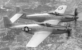 En dépit de son nom, le Twin Mustang était loin d’être constitué de deux Mustang réunis par leur aile centrale. Il n’en reste pas moins vrai que North American gagna du temps et économisa de l’argent en reprenant l’installation moteur et d’autres éléments du P-51 pour fabriquer un chasseur d’escorte biplace bimoteur. L’USAAF avait besoin d’un tel appareil pour accompagner ses B-29 dans leurs missions contre le japon à la fin de la deuxième guerre mondiale. Ce concept du jumelage de deux appareils n’était pas nouveau car la Luftwaffe avaient déjà pensé à jumeler deux Bf.109 pour en faire le Zwilling.