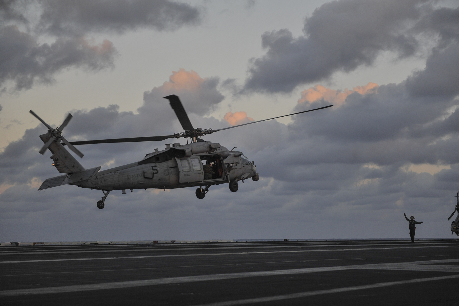 Dans le même temps les équipages des hélicoptères Seahawk et Knighthawk ont participé à des exercices de simulations d’éjection au-dessus de la mer d’un pilote à récupérer. Pour plus de réalisme et afin que l’exercice soit cohérent ce sont de vrais pilotes de jets de combat qui jouaient leurs rôles et devaient se mettre à l’eau… depuis un autre hélicoptère. Toutes ces simulations se sont parfaitement bien déroulées, permettant aux uns et aux autres de parfaire leur maîtrise de ces procédures d’urgence.
