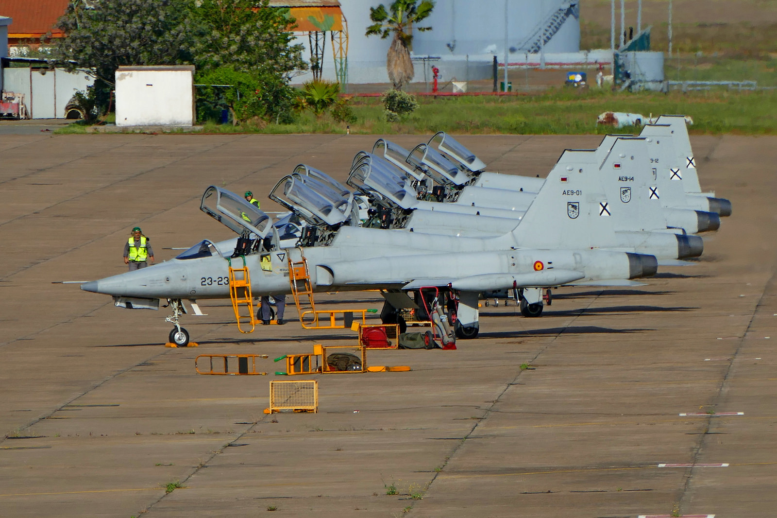 Pour mémoire ces avions sont localement désignés AE.9, ce qui signifie qu’ils sont considérés comme des avions d’entraînement et non comme des chasseurs. En Espagne l’Ejército del Aire cherche désormais un successeur à ses dix-huit vieux biréacteurs Northrop F-5B Freedom Fighter encore en dotation au sein de l’Ala 23. Des avions désormais très coûteux à entretenir et surtout à faire voler, et pour cause.