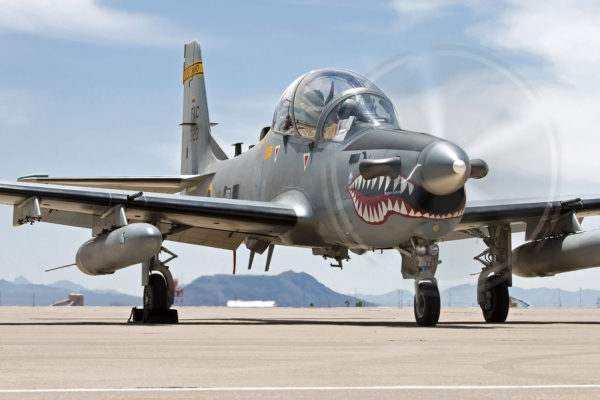 - L’Embraer Emb-314 Super Tucano, avion d’appui aérien rapproché, présent au printemps 2018 à hauteur de 24 exemplaires de la version Emb-314M.