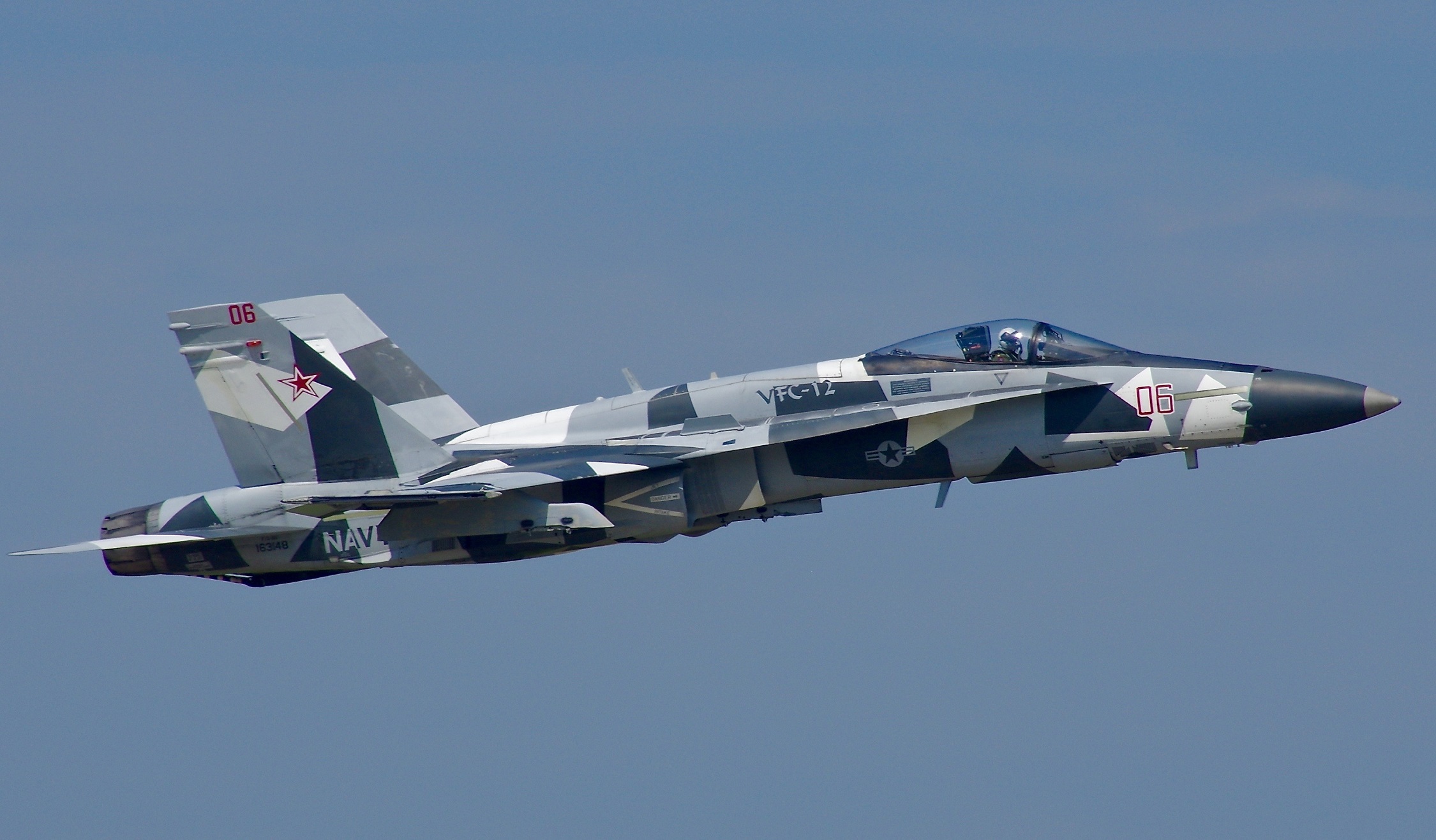 Si vous passez par la côte est des États-Unis et qu’au-dessus de votre tête vous croyez voir voler des avions de combat russe ça ne veut pas dire que Moscou tentera une nouvelle provocation. Simplement vous viendrez d’apercevoir un des avions de l’escadron VFC-12, certainement la plus originale des unités d’Agressors de l’US Navy. Ses McDonnell-Douglas F/A-18 Hornet portent en effet des livrées qui pourraient aisément les faire passer pour des Sukhoi de la famille Flanker. Ça tombe bien, c’est fait exprès !
