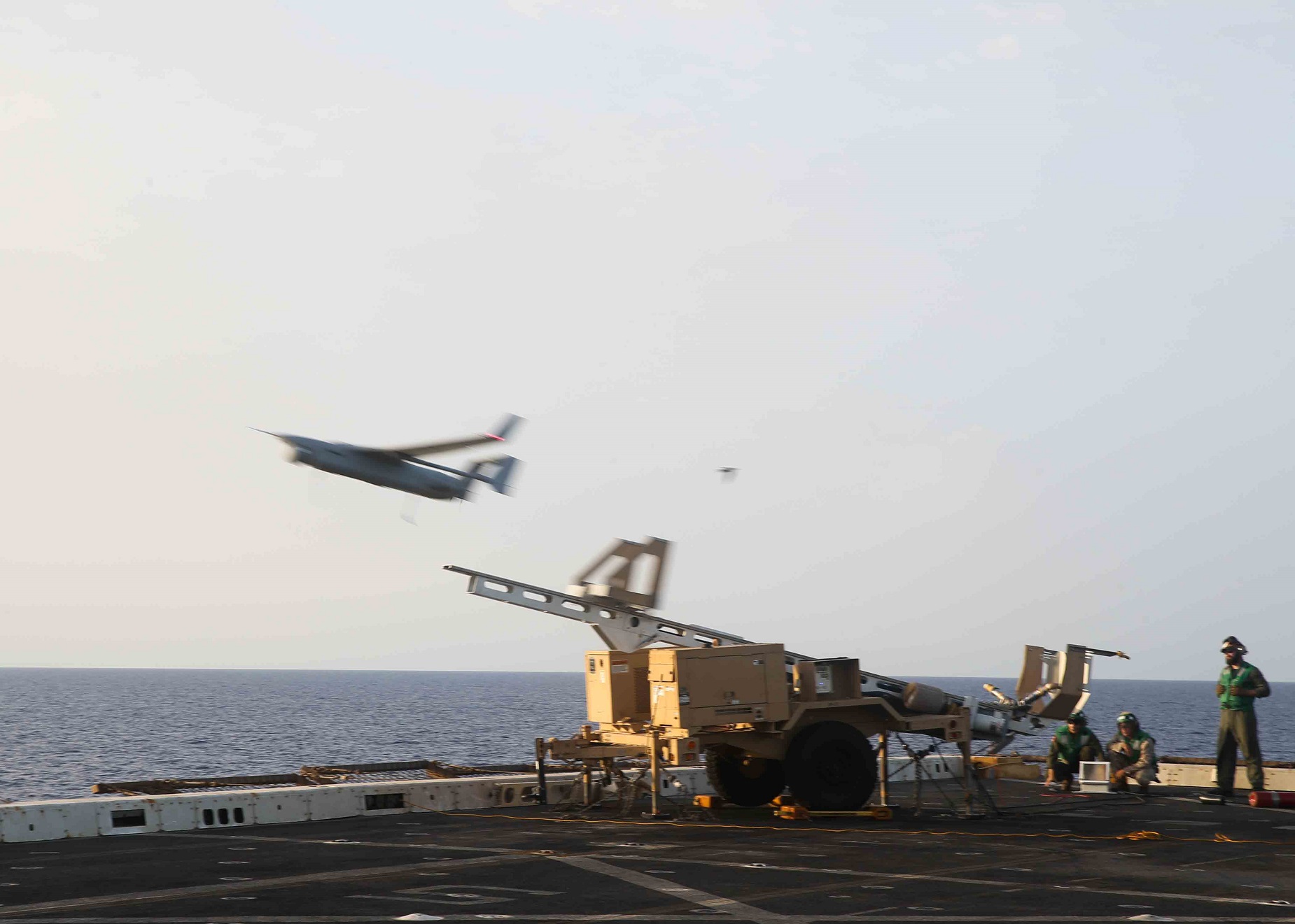 La destination du Boeing MQ-27 ScanEagle est sensiblement différente. Il est considéré comme l’œil volant de nombreux bâtiments de commandement voire de soutien amphibie. Il peut arriver qu’un même navire dispose de des deux modèles de drone. Depuis l’an dernier les systèmes de lancement de ces deux modèles d’avions sans pilote sont d’ailleurs compatibles. Une demande qui avait été formulée en 2016 sous la forme d’un retour d’expérience. Les ScanEagle peuvent donc surveiller l’espace maritime aux alentours des navires de guerre de l’US Navy, jouant ainsi un rôle complémentaire aux radars de défense grâce à leurs capteurs actifs et passifs.