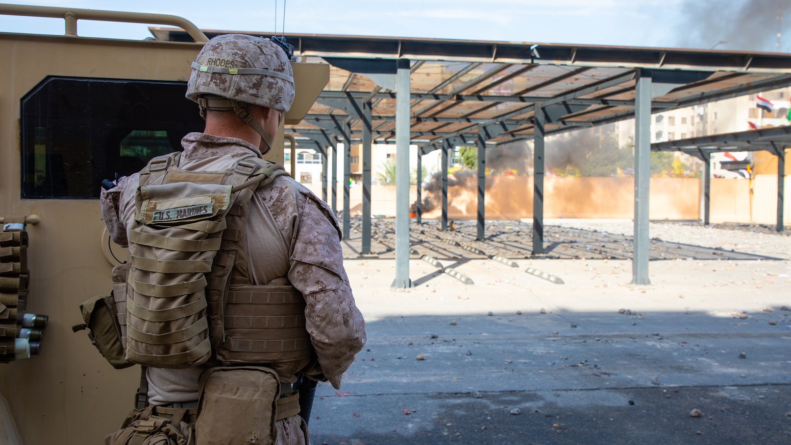 Le survol de l’ambassade américaine de Bagdad par deux McDonnell-Douglas AH-64D Apache appartenant à l’US Army a semble t-il été la goutte d’eau qui a fait débordé le vase irakien. En effet la manifestation anti-américaine du 1er janvier 2020 fut particulièrement violente, avec deux pans de la muraille externe de l’ambassade incendiés. Pour autant elle relevait du maintien de l’ordre et non de la guerre de rue. Or la réponse du Pentagone d’envoyer ces deux hélicoptères de combat pour montrer leurs armes a eu un retentissement très fort, y compris au delà des Bagdadiens en Bagdadiennes. Sous le coup également des propagandistes iraniens les Irakiens voient en cette décision américaine d’employer leur fameux hélicoptères de combat comme un acte de guerre contre la population locale.