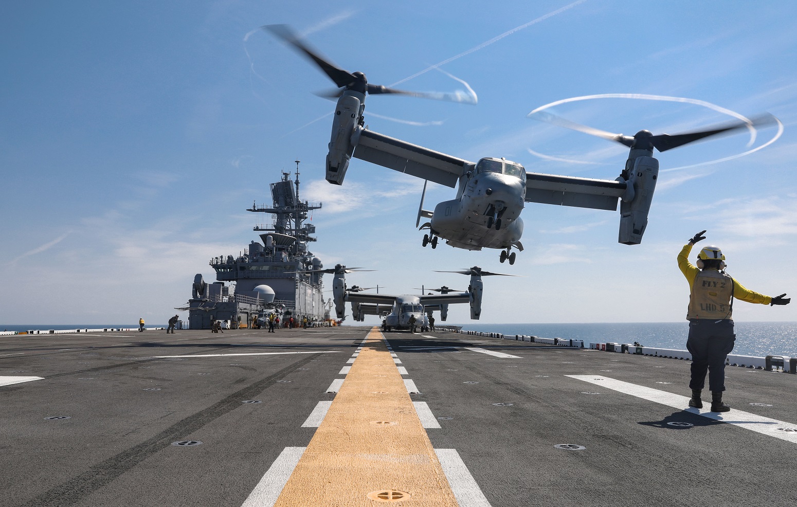 MV-22B Osprey en opération depuis le pont d’envol de l’USS Bataan.