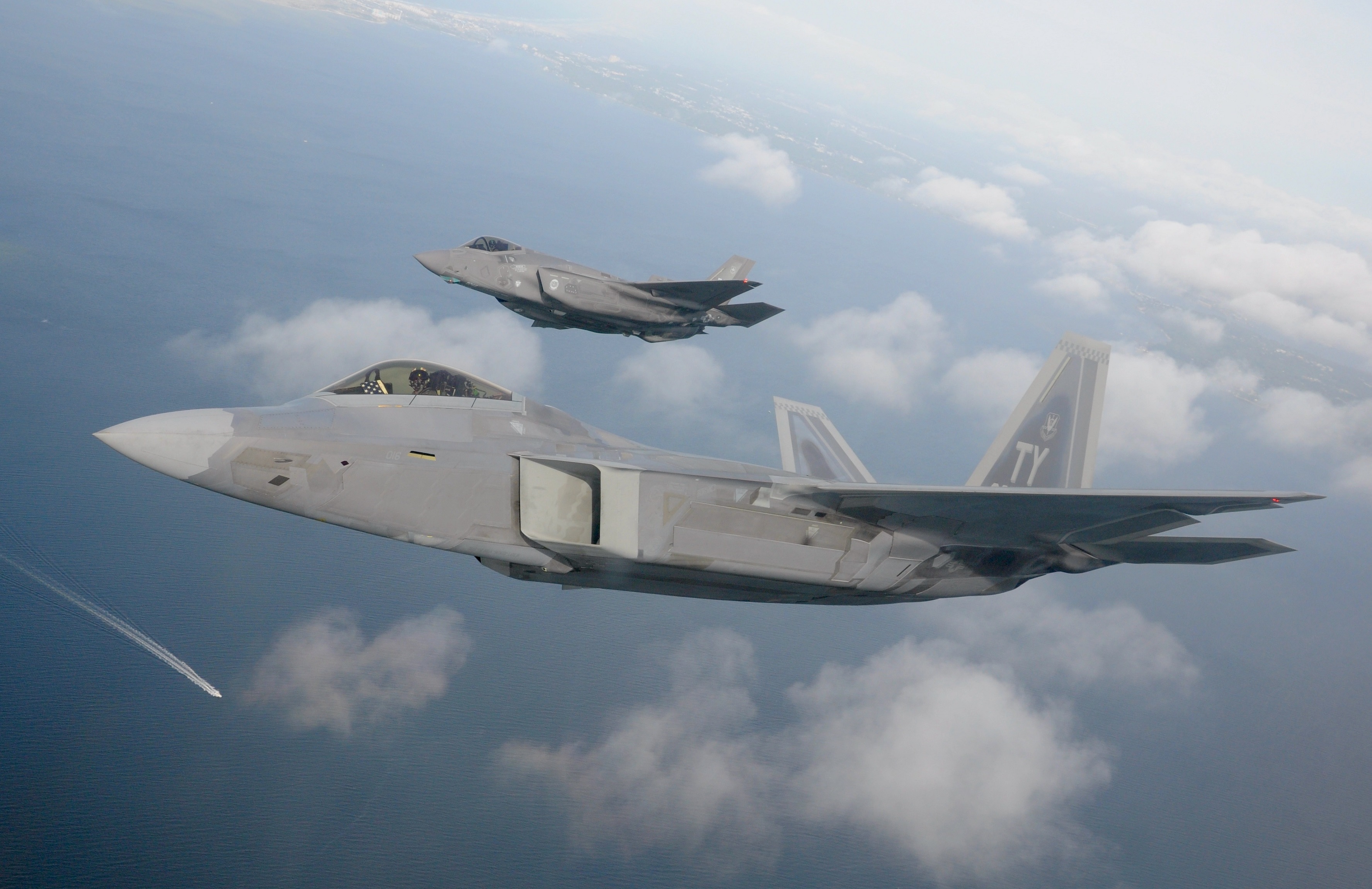 Pour la photo de cette semaine direction le seul pays au monde qui aligne deux modèles différents de chasseurs furtifs dans son arsenal : les États-Unis. Sur ce cliché vous pouvez admirer les deux avions aux couleurs de l’US Air Force alors même qu’ils survolent le nord-ouest de la Floride. Particularité notable tous deux ont été conçus et sont construits par Lockheed-Martin.