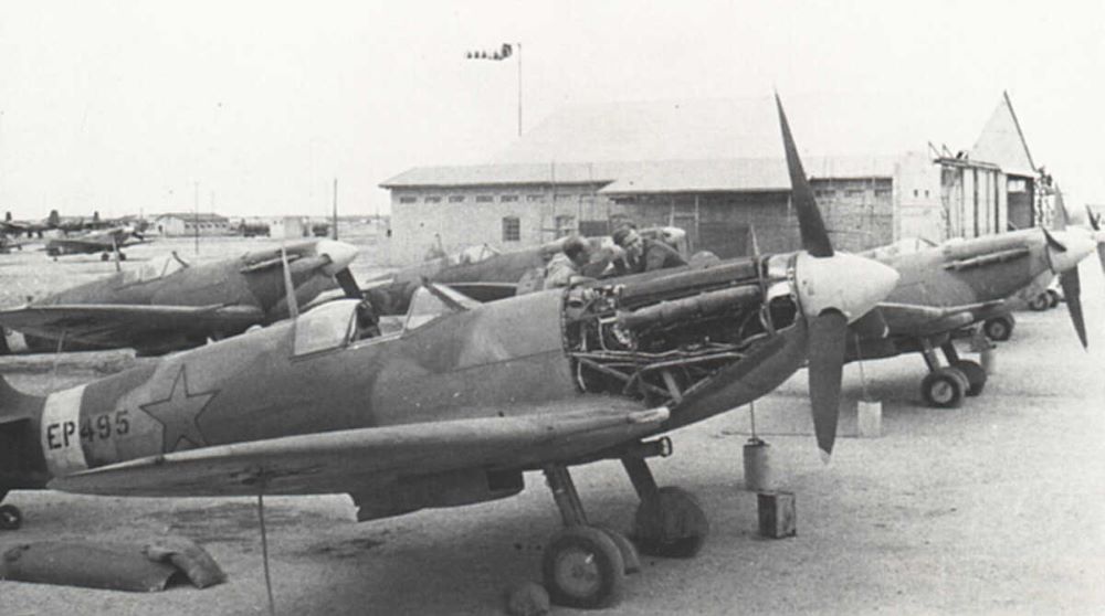 Chasseurs britanniques Supermarine Spitfire fraîchement livrés à l’URSS en 1943.