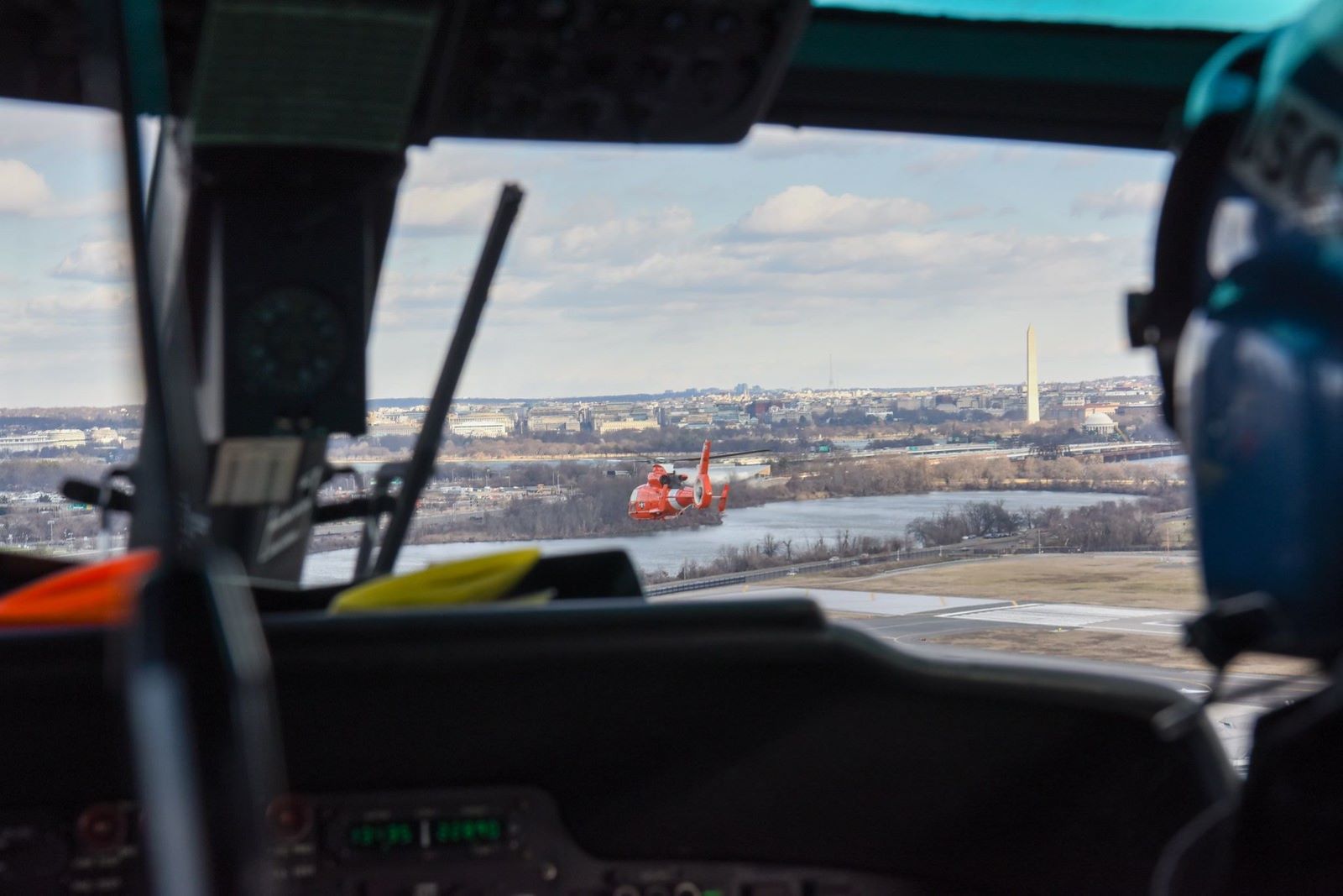 Depuis leur nid de CGAS Atlantic City il faut environ une demi-heure aux deux MH-65D Dolphin d’alerte NCRADF pour rejoindre les deux principaux points névralgiques de la ville : le Capitole et la Maison Blanche. Le premier est le siège du pouvoir législatif américain et le second celui du pouvoir exécutif. Le National Capital Region Air Defense Facility doit pouvoir y déployer rapidement sa formation de deux hélicoptères biturbines. Et c’est là que les entraînements de la lieutenante Hills deviennent complexes car elle doit apprendre à voler en formation serrée au-dessus du zone fortement urbanisée et potentiellement très touristique. Et cela de jour autant que de nuit. On est alors en effet bien loin du cœur de métier de l’US Coast Guard.