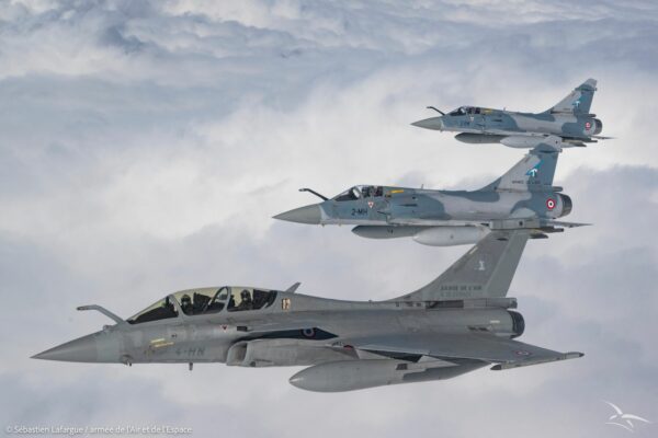 La photo de ce weekend pourrait bien ravir les fans (nombreux) de l’Armée de l’Air et de l’Espace. On y découvre un Rafale B et deux Mirage 2000-5F appartenant respectivement aux Escadrilles 2/4 Lafayette et 1/2 Cigognes. Des avions qui participent à l’exercice de chasse Cigonex.