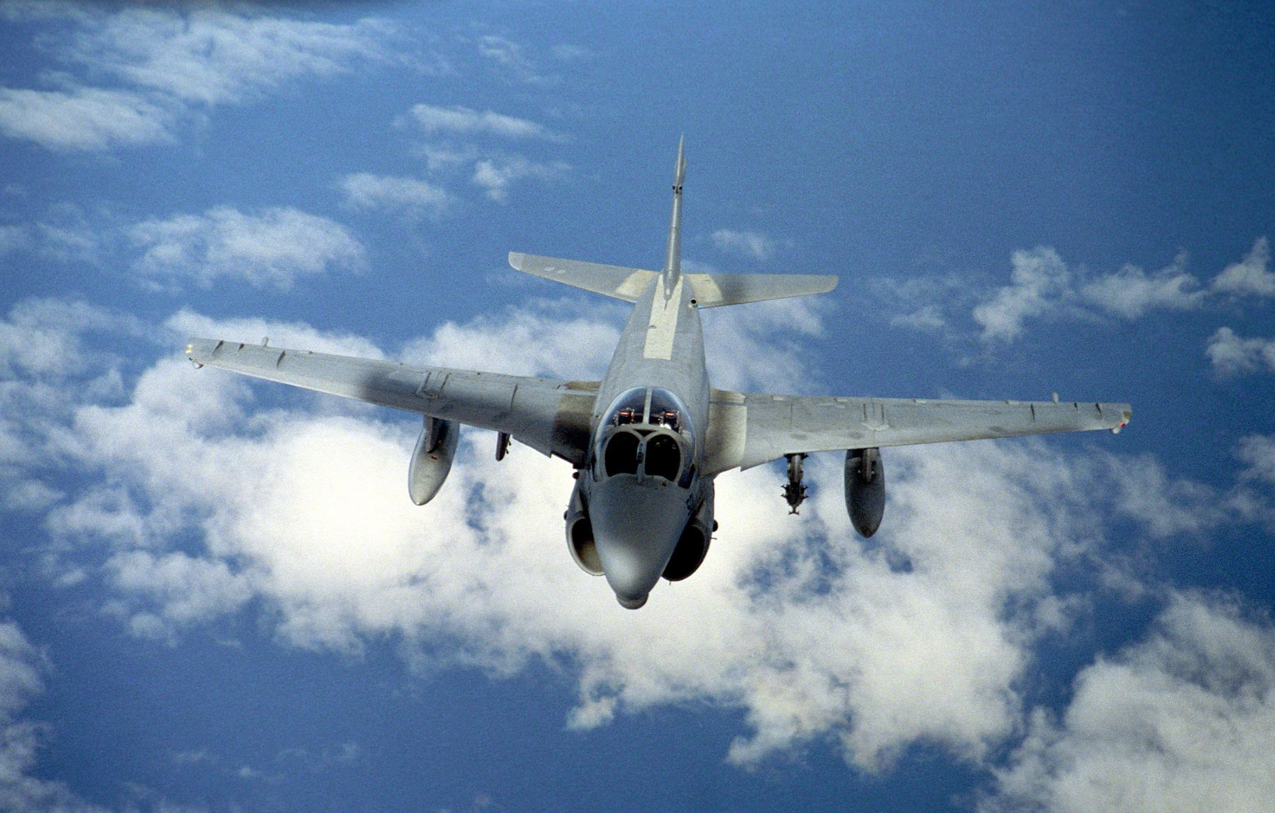 Plusieurs de nos lectrices et lecteurs à l’œil le plus aiguisé auront sans doute remarqué que sur ces photos il n’y a pas strictement que des A-6 Intruder. Si les EA-6A Electric Intruder et à fortiori EA-6B Prowler de guerre électronique en sont absents car trop différents on retrouve par contre des KA-6D Intruder… de ravitaillement en vol. C’est une petite particularité que je trouve intéressante sur cet avion ô combien intéressant. Chaque photo fait 1850 pixels de large, permettant ainsi d’être utilisée comme fond d’écran de PC.