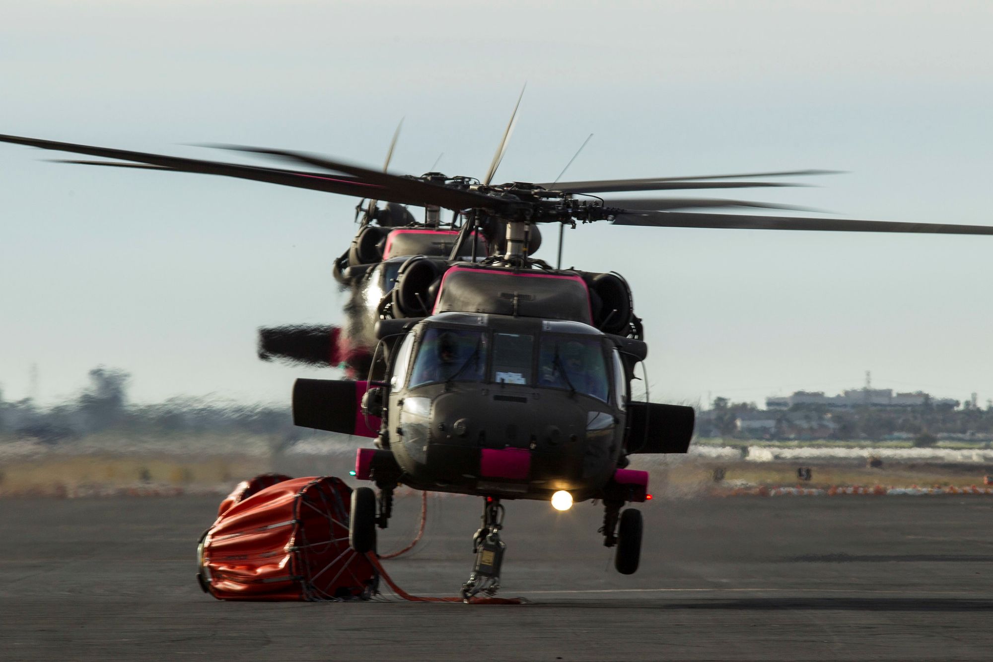 Outre les deux Bambi buckets les marquages roses de ces Blackhawk trahissent leurs missions.