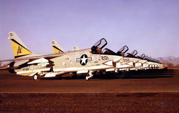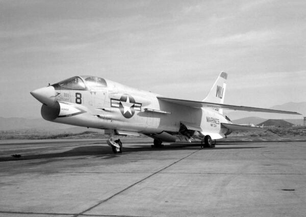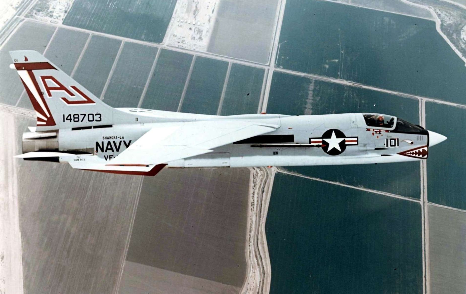 En septembre 1962 le F8U Crusader est devenu le F-8 Crusader. Chasseur pur de haut niveau c’était par contre un médiocre chasseur-bombardier. On ne peut pas exceller partout. Ayant servi durant 19 ans il a largement participé à la guerre du Vietnam où son armement interne fit souvent la différence face aux chasseurs MiG-19 Farmer et MiG-21 Fishbed d’origine soviétique de l’ennemi. Une version de reconnaissance tactique a été dérivée mais n’est pas représentée ci-dessous. Trêve de bavardages bien inutiles, passons désormais aux photos.