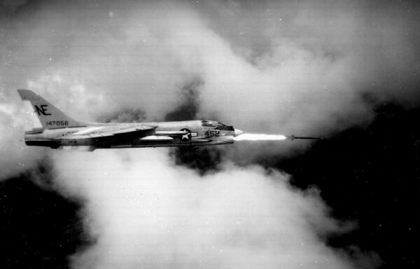 À l’instar d’autres avions présentés jusque là ce Vought F8U Crusader vous apparait ci-dessus à la fois en couleur et en Noir & Blanc. Cela vient du fait que l’avion opérait à la période charnière entre ces deux types de photographies. Comme d’hab’ elles vous sont proposées en 1850 pixels de largeur, sauf celle de couverture légèrement plus petite, et elles sont «dans leur jus» comme en atteste celle du tir missile. Maintenant que nous avons (largement) dépassé la moitié de notre saga j’espère que vous l’appréciez.