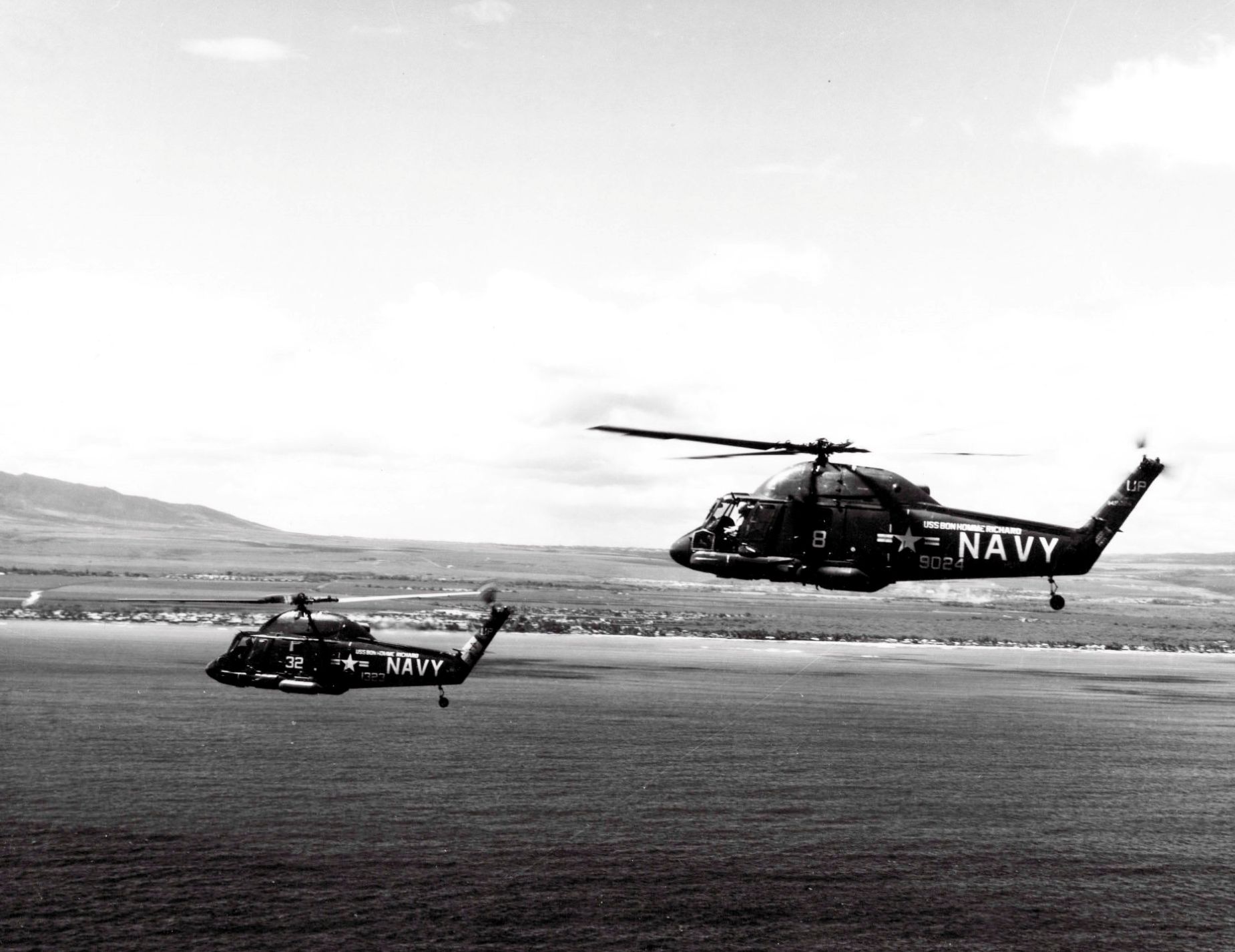 Comme vous avez pu vous en rendre compte certaines photos sont en couleurs, d’autres en noir et blanc. Le Kaman SH-2 Seasprite a en effet voler à une époque où les deux types de clichés existaient pleinement. Vous remarquerez au passage les similitudes de livrées entre chaque machine.