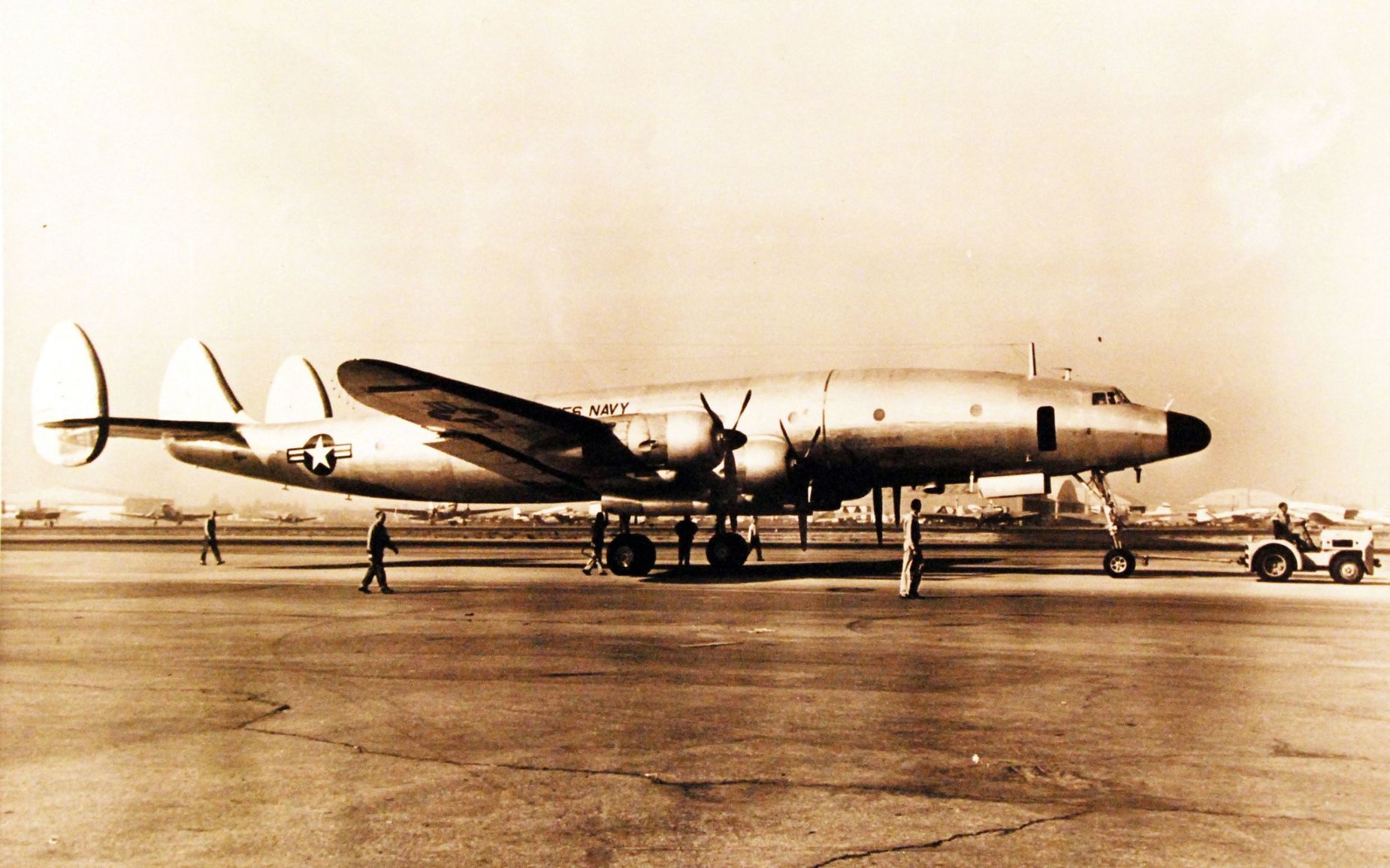 Pour cet antépénultième volet de notre saga sur les 250 ans de l’US Navy et de l’US Marines Corps intéressons nous à celui qui reste un des plus beaux et des plus élégants avions de transport de l’histoire aéronautique. Le quadrimoteur Lockheed R7V Constellation a connu tout à la fois la Seconde Guerre mondiale mais aussi la guerre du Corée et celle du Vietnam. En septembre 1962 ils furent redésignés C-121J Constellation, et LC-121J dans le cas de l’unique avion dédié aux opérations polaires. Pour l’anecdote l’US Navy désigna ses Constellation R7O avant d’opter pour R7V.