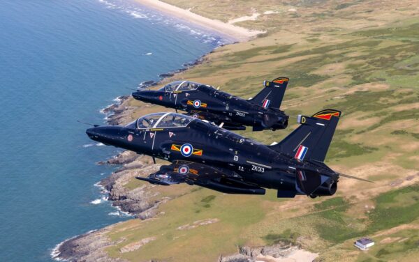 Et pour aujourd’hui c’est la couleur qui prédomine, même si les deux avions en photo sont noirs. Sous ces deux BAE Systems Hawk T.2 c’est un éclatement de couleurs, celles de la Grande Bretagne et de la mer d’Irlande. Ces avions forment les pilotes au sein de la Royal Air Force. Et franchement je ne sais pas vous mais moi je les trouve classes !
