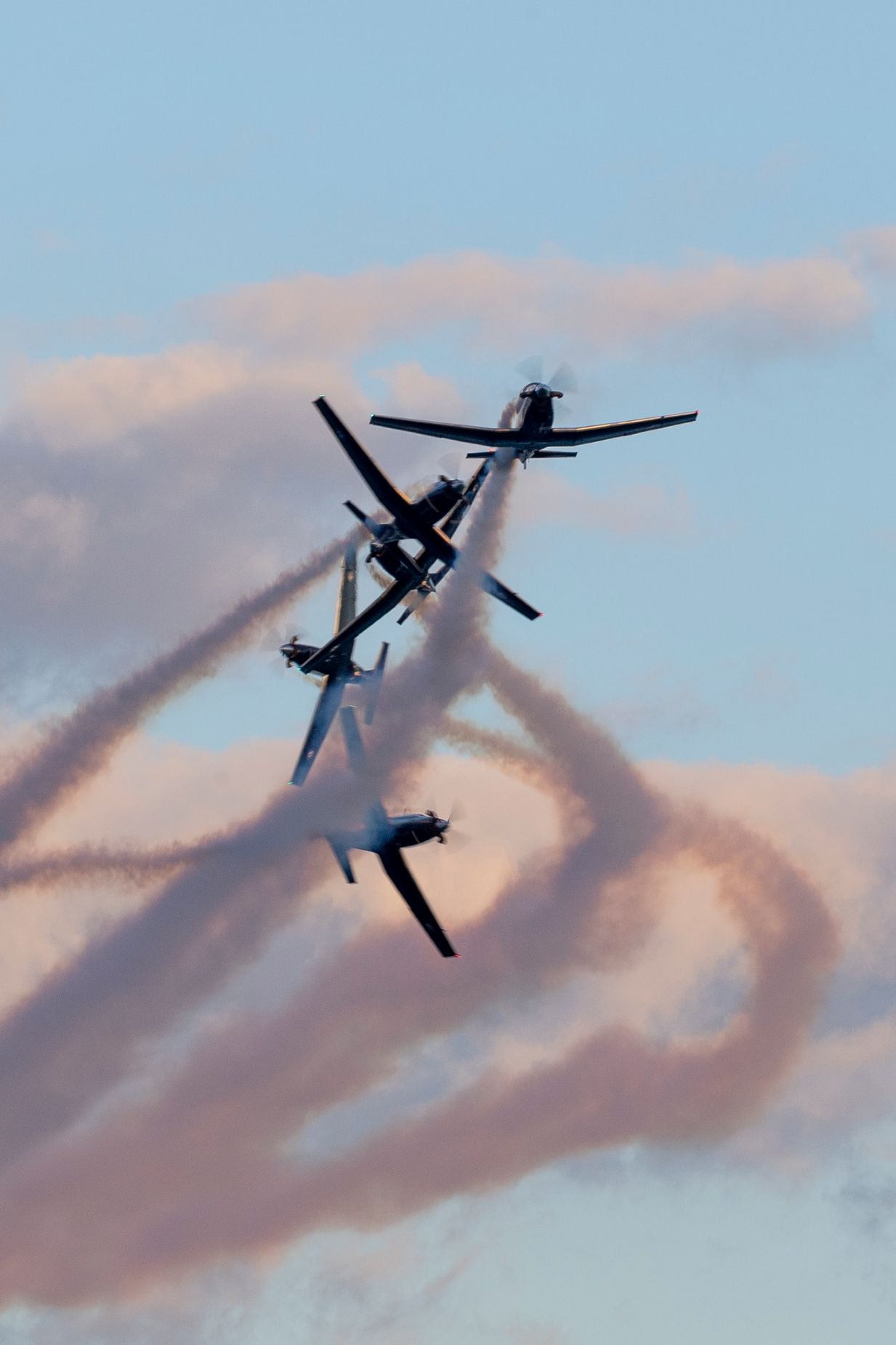 Traditionnellement le mois de février c’est celui au sein des Black Falcons du renouvellement des pilotes. Ils sont cinq en présentation, à bord de leurs monomoteurs turbopropulsés Beechchcraft T-6C Texan II. Omniprésents dans les meetings aériens néo-zélandais ils se produisent parfois en Australie, et c’est à peu près tout !