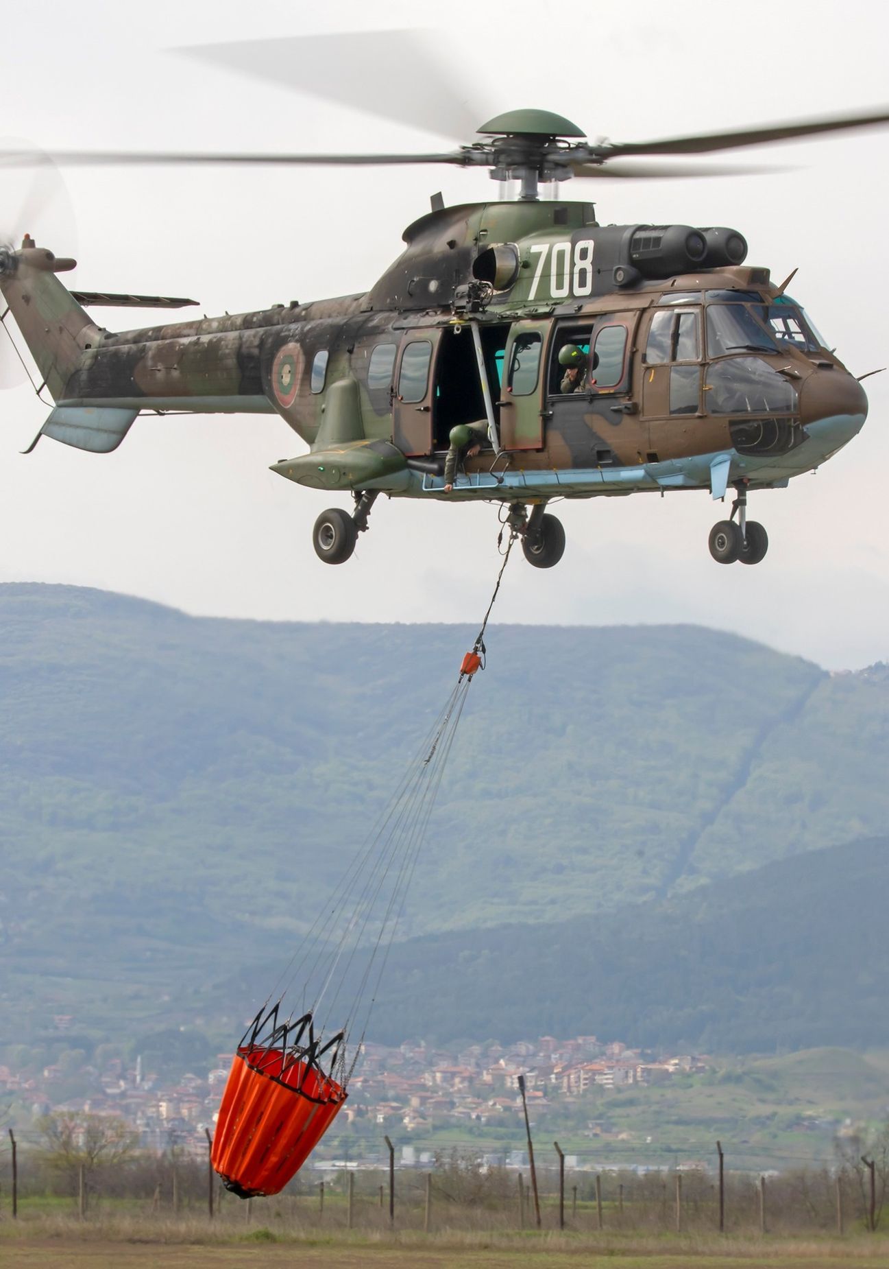 À l’été 2022 après avoir dû affronter des feux d’une ampleur inégalée le gouvernement de Sofia mit en place une unité activée ponctuellement autour de quatre hélicoptères bombardiers d’eau dotés de Bambi buckets de 2000 litres chacun et de deux appareil de reconnaissance et de commandement aéroportée. Dès le départ les AS.532AL Cougar furent préférés aux Mil Mi-17 Hip-H d’origine russe. Pourtant au cours des deux premières années ce sont des avions d’entraînement primaire Zlin Z-242L qui furent engagés afin de guider les HBE depuis la moyenne altitude. C’est seulement en 2024 que les Jet Ranger les remplacèrent dans cette fonction.