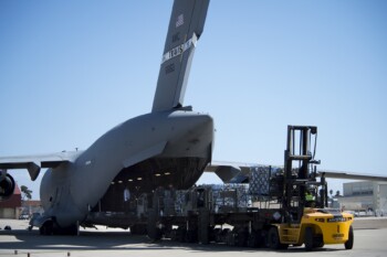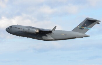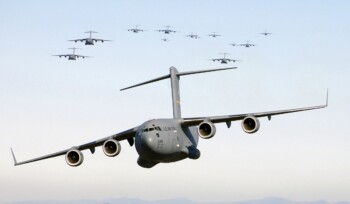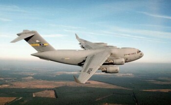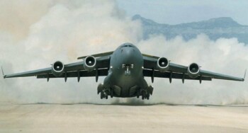 L’avion militaire de transport McDonnell-Douglas C-17, avion à haute-aile de quatre réacteurs, se caractérise par un train d’atterrissage doté de quatorze roues, des ailettes d’extrémités de voilure destinées à améliorer les performances en vol et une structure en matériaux composites. Cet appareil est capable d’opérer à partir de pistes de petites dimensions en vue d’accomplir des missions à la fois stratégiques et tactiques.