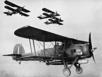 Alors que les autres puissances volaient à bord de bombardier-torpilleur monoplan en métal, la force de frappe de la Royal Navy reposa durant les deux premières années de guerre presque entièrement sur ce biplan en bois, surnommé « String bag » (Filet à provisions) à cause de ses nombreux câbles et haubans. Avion torpilleur standard des portes-avions britanniques jusqu’en 1943, il sera l’instrument de la plupart des succès aéronavals britanniques, notament en Méditerranée.