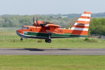 Doté d’une coque d’hydravion et mû par deux volumineux propulseurs à pistons montés dans des nacelles sur les ailes, le Canadair CL-215 est un avion amphibie unique en son genre, conçu pour combattre les feux de forêt en les bombardant d’eau et de retardateurs chimiques. Il fut conçu à la demande de nombreux pays afin de remplacer les vieux PBY Catalina modifiés pour la lutte anti-incendie.