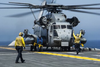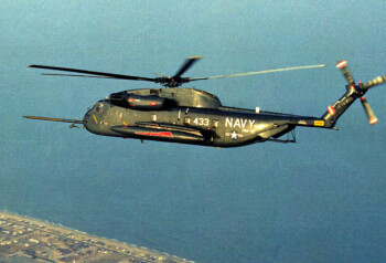 Fin 1969 ce Sikorsky CH-53D Sea Stallion fit son apparition dans les rangs de l’US Marines Corps en tant que principal hélicoptère de transport lourd et d’assaut armé. Bien entendu il fut massivement utilisé durant les opérations en Asie du sud-est, notamment comme grue volante pour rapatrier les avions et hélicoptères abattus par la DCA ennemie. Un lot de vingt-quatre exemplaires fut commandée pour le repérage et la destruction des mines par l’US Navy comme RH-53D tandis que deux exemplaires de plus étaient acquis par les Marines pour le soutien aux opérations présidentielles en tant que VH-53D.