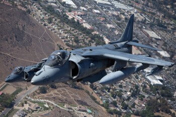 Le prototype YAV-8B ayant effectué son vol initial en novembre 1978, le Harrier II, qui bénéficie d’une capacité d’emport de charge nettement supérieure à celle du Harrier, est entré en service à partir d’octobre 1983. Cet appareil est équipé d’un système de bombardement Hughes, et le Harrier II Plus est doté, outre d’un radar APG-65, d’un dispositif de vision nocturne.