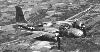 La première version de série, le A-26B, entra en service en 1944. Produite à 1 355 exemplaires, elle comportait un nez plein avec mitrailleuses fixes orientées vers l’avant, en remplacement du poste de bombardier. Cette configuration se prêtait tout particulièrement aux attaques en piqué ou en vol rasant contre les convois, les ponts et les installations fortifiées. Le baptême du feu du A-26B eut lieu le 19 novembre 1944 en Europe, au sein de la 9th Air Force. Dans les mois suivants, il fut également intégré aux forces aériennes du théâtre Pacifique, où sa vitesse et sa puissance de feu le rendirent redoutable contre les colonnes japonaises et les bases côtières.