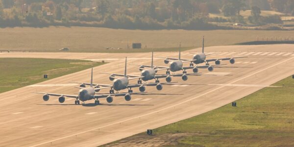 Celles et ceux qui nous lisent depuis plusieurs années maintenant le savent bien : je ne résiste jamais à un bon Elephant Walk. Celui qui vous est proposé aujourd’hui a eu lieu le mois dernier à Bangor ANGB, le nid du 132nd Air Refueling Squadron dans l’état américain du Maine. On y voit cinq avions de ravitaillement en vol Boeing KC-135R Stratotanker alignés comme à la parade sur la piste 15/33. D’ici la fin de cette décennie l’unité en question aura changé de monture. En temps normal un Elephant Walk qui se serait passé un dimanche 5 octobre 2025 vous aurait été proposé dans les cinq à sept jours suivant son exécution. Sauf que l’Amérique vient de subir un shutdown historique, qui s’est étendu du