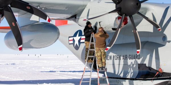 Il y a deux semaines nous vous révélions qu’un Airbus Military A400M Atlas français avait réussi à opérer en Arctique exactement comme les Lockheed LC-130H Skibird américains. Ce mercredi 8 avril 2026 nous revenons sur cet avion de transport de l’US Air Force avec notre photo du jour, et un accessoire dont nos lectrices et lecteurs les plus assidus savent qu’ils fait absolument toute la différence… On parle évidemment ici de l’escabeau. Running gag s’il en est sur le site Avions Légendaires initié en juillet 2022 et poursuivi jusqu’à l’été dernier et même le début de cette année 2026 l’escabeau est toujours l’occasion d’admirer une photo qui met en avant l’essentiel de cet objet culte : l’être humain. Et là en plus il y a