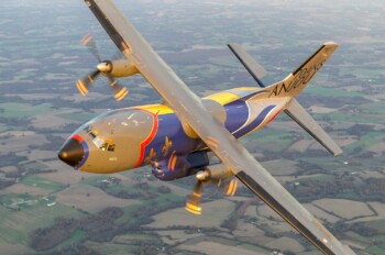 Les ailes montées en position haute sont également effilées à l’extérieur des moteurs avec des extrémités émoussées. Deux turbopropulseurs sont montés dessous et étendent au delà des principaux bords des ailes.