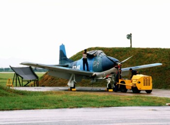 Il en fut tout autrement des T-CH-1A Chung Hsing qui eux demeurèrent en service jusqu’au début du vingt-et-unième siècle, ne quittant le service actif qu’en 2003. Utilisés uniquement, grâce à leur charge de combat de 1250kg, pour des missions d’attaque au sol et d’appui aérien rapproché ils furent notamment engagés dans les années 1990 lors d’opération de maintien de l’ordre dans le même détroit de Formose. Ils pourchassaient les esquifs et embarcations semi-rigides rapides qui tentaient de rançonner les navires-cargos, pétroliers, et porte-conteneurs qui l’empruntaient. Bien que correctement armés de roquettes en panier et de bombes lisses ils ne tirèrent jamais la moindre munition, leur rôle étant strictement dissuasif. Leur camouflage n’y était sûrement pas pour rien ! Il n’y a que lors d’exercices que leurs pilotes avaient la possibilité de tirer.