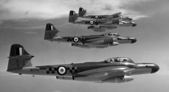Il fallut attendre l’immédiat après-guerre pour que des avions à réaction disposent de tels équipements. C’est la raison pour laquelle, désirant poursuivre la réussite du Meteor, l’avionneur Armstrong-Whitworth développa une version biplace tous temps désigné Meteor NF.