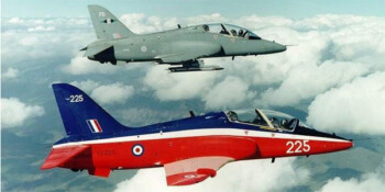 Les Red Arrows, équipe de voltige aérienne officielle de la Royal Air Force, adoptèrent le Hawk en 1979, remplaçant leurs précédents Folland Gnat par neuf Hawk T.1 spécialement modifiés. Ces appareils, reconnaissables à leur livrée rouge distinctive, incorporent des systèmes de génération de fumée colorée et des modifications aérodynamiques mineures optimisant les performances en formation serrée. Les démonstrations des Red Arrows ont contribué de manière déterminante à la promotion internationale du Hawk, leurs évolutions spectaculaires lors des meetings aériens mondiaux constituant une vitrine exceptionnelle pour l’industrie aéronautique britannique.