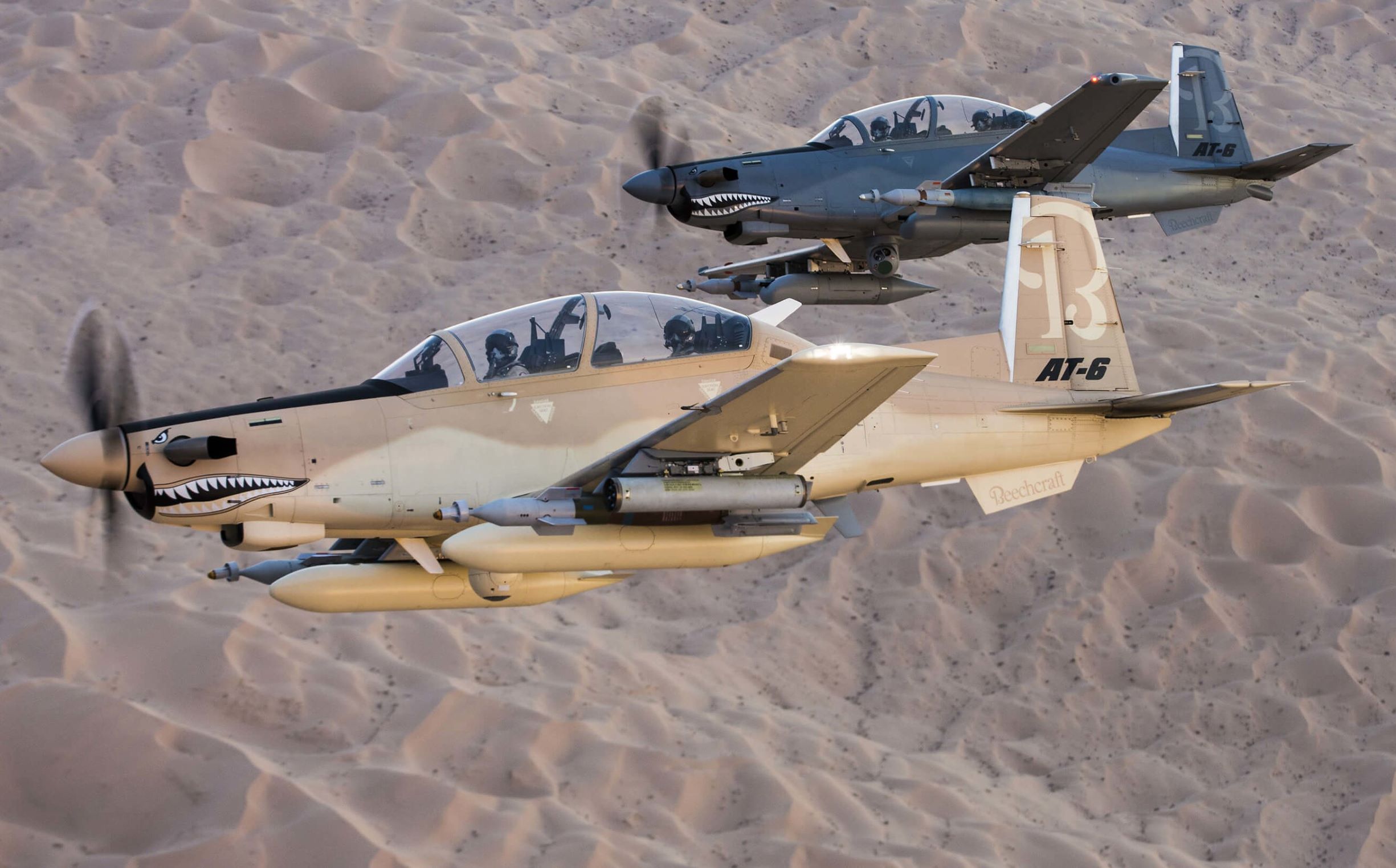 L’expansion au début du 21e siècle des conflits asymétriques menées par les forces américaines en Afghanistan puis en Irak mais aussi par certains alliés de Washington DC comme la France poussèrent les avionneurs à repenser la place de l’aéronef dans ces guerres. Des jets de combat classiques comme l’avion d’attaque Fairchild-Republic A-10C Thunderbolt II ou le chasseur de pénétration McDonnell-Douglas F-15E Strike Eagle n’étaient-ils pas désormais disproportionnés ? C’est en partant de ce constat que plusieurs programmes furent lancés, souvent sur fonds propres, afin de répondre à un besoin naissant : celui d’avions plus rustiques mais disposant d’un armement tout de même de pointe. Et l’une des réponses fut celle du Beechcraft AT-6 Wolverine.