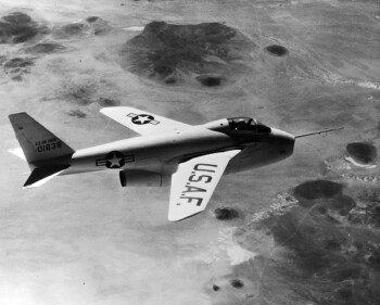 Au printemps 1945 les troupes américaines mirent la main sur plusieurs programmes militaires allemands plus ou moins avancés. Parmi ceux-ci figurait un étrange avion de chasse ayant la possibilité au sol de modifier la flèche de l’aile. Cet appareil, désigné Messerschmitt P.1101 fut immédiatement saisi et analysé sur le site même d’Oberammergau dans le sud de la Bavière. Bien qu’incapable de voler, car assemblé à environ 80% seulement il impressionna grandement les ingénieurs de l’US Army Air Force dépêchés sur place et notamment Robert J. Woods alors en charge chez Bell Aircraft du développement des avions à réaction. Le père du décevant P-59 Airacomet fut stupéfait par les capacités envisagées de l’avion.