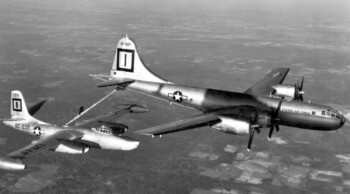 Si le concept du ravitaillement est désormais parfaitement intégré dans la très grande majorité des forces aériennes contemporaines, il faut savoir qu’il n’en a pas toujours été ainsi. En fait jusqu’à la fin de la Seconde Guerre mondiale l’idée de transférer en plein vol du carburant d’un aéronef à un autre aéronef ne semblait pas forcément pertinent. Même si quelques difficiles essais avaient menés avant guerre aux États-Unis et au Royaume Uni c’est bien avec l’avènement de la guerre froide que cette technique allait prendre son essor sous la forme de deux quadrimoteurs étroitement liés : les Boeing KB-29 et KB-50 Superfortress.