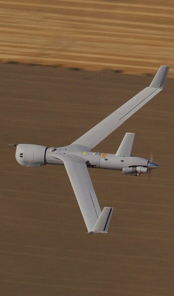 Un an plus tard Insitu a l’idée de développer une version améliorée destinée aux opérations militaires et baptisé ScanEagle. S’il reprend les grandes lignes et la philosophie du SeaEagle le nouveau drone est bien plus moderne avec son aile en flèche, son moteur à hélice propulsive deux temps d’un cheval et demi de puissance, et son autonomie désormais portée à quinze heures de vol. Le prototype du ScanEagle réalise son premier vol le 20 juin 2002. Dès le départ il intéresse l’US Army et l’US Marines Corps qui voient en lui un bon moyen d’observer le champs de bataille, notamment dans la guerre alors naissante d’Afghanistan. L’invasion de l’Irak de Saddam Hussein quelques mois plus tard allait leur donner raison. Non seulement le ScanEagle est un drone parfaitement adapté aux opérations militaires mais en plus sa rusticité en fait un complément efficace des engins télépilotés plus complexes.