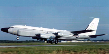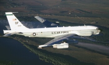 En service dans l’US Air Force, le Boeing RC-135 est le principal avion d’espionnage des communications hostiles. Il s’agit d’une version assez profondément modifié de l’appareil de transport C-135 Stratolifter et de ravitaillement en vol KC-135 Stratotanker. Cet appareil qui opère dans le monde entier pour espionner les éventuels ennemis ou pays suspects, fait parti du 55th Strategic Reconnaissance Wing sous la forme de sous versions désignées RC-135U, RC-135V et RC-135W. Ces deux dernières versions ont la caractéristique commune d’un nez allongé et des carénages latéraux montés de chaque coté de l’avant du fuselage. Les versions RC-135S et RC-135X sont eux plus spécialisés dans la détection des signaux émis par les missiles ICBM.