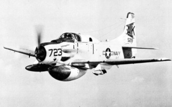 Alors que la guerre commençait à faire rage dans cette partie du monde, entre forces pro-américaines et forces pro-soviétiques, l’aéronavale des États-Unis continuait le développement des Skyraider de guerre électronique. Le Douglas AD-4 donna naturellement naissance à l’AD-4Q spécialement conçu pour le brouillage des toutes nouvelles batteries de missiles sol-air soviétiques. Mais surtout il fut la base des cent soixante-huit AD-4W, la version jusque là la plus importante de ces avions. En unité l’AD-4W reçut rapidement le surnom de Big Belly Buzzing, c’est à dire de «gros ventru bourdonnant» en raison de son radôme autant que du bruit de son moteur au décollage autant qu’en vol.
