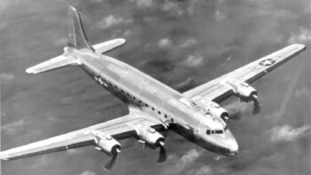 Tout premier avion de l’Histoire à avoir reçu l’indicatif Air Force One le Douglas VC-54 Skymaster n’est pas à proprement parlé un avion de transport militaire de premier plan. Sa participation pourtant aux conférences de paix de la Seconde Guerre mondiale fit du Sacred Cow une véritable icône américaine. L’avion est d’ailleurs préservé par le National Air & Space Museum.