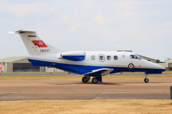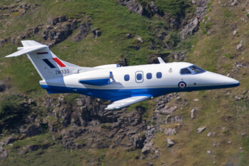 Mais c’est d’Europe que va venir la consécration pour Embraer. En effet en février 2016 le ministère britannique de la défense annonce la signature d’un contrat de fourniture pour cinq Phenom 100 destinés à la Royal Air Force. Désignés Phenom T.1 dans la nomenclature britannique ils sont destinés à l’entraînement avancé sur avion multi-moteurs. Ils débutent leur carrière opérationnel au sein du N°45 Squadron de la RAF début 2018 en remplacement des Beechcraft Avenger T.1 utilisés jusque là. Depuis le retrait du service des légendaires Hawker-Siddeley Dominie T.1 l’aviation britannique n’avait plus eu de jets d’affaire dévolus aux missions d’entraînement avancé. Les prévisions officielles prévoient leur service jusqu’en 2033 minimum.