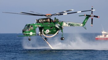 En 2021 l’Erickson S-64 Aircrane demeure le principal hélicoptère lourd de lutte anti-incendie disponible sur le marché. Il ne frappe d’ailleurs pas le feu qu’avec de l’eau puisque depuis 2008 il peut emporter un mélangeur eau-retardant à côté de son réservoir de 2650 gallons.