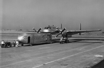 Le moins qu’on puisse dire c’est qu’en 1949 quand les premières ébauches apparurent le Fairchild XC-120 Packplane ressemblait fortement à un hybride entre le C-119 Flying Boxcar et le Fieseler Fi 333. En fait il reprenait les grandes lignes du nouvel avion de transport tactique de l’US Air Force : poste de pilotage, voilures, ou encore poutres de queue provenaient de lui jusqu’à ses deux Pratt & Whitney R-4360 Wasp Major à vingt-huit cylindres en étoile et leurs capotages. Un train d’atterrissage quadricycle escamotable fut installé. Il offrait la possibilité de surélever l’avion suffisamment pour glisser sous lui un conteneur lui même monté sur quatre roulettes et elles même rétractables dans le dit caisson. Quatre treuils mécaniques installés aux emplacements des quatre angles du conteneur permettaient de le hisser sous le XC-120. Par la suite un coussin d’air se remplissait et venait combler les vides entre le bimoteur et sa cargaison.