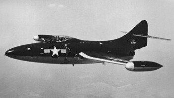 Par la suite il y eu un avion différent mais similaire chez Grumman. Cette version modifiée du Panther , avec une aile affinée et en flèche de 35°, et d’abord appelée F9F-6 fut désignée F9F Cougar.