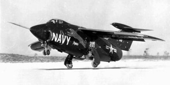 A la fin des années 40, le Bureau of Aeronautic (BuAe, bureau d’étude aéronautique) de l’US Navy s’intéressa de prêt aux travaux menés par l’US Air Force et l’avionneur Bell en Californie sur le concept d’aile à géométrie variable. Ce concept né du génie de quelques savants et ingénieurs nazis prévoyait une modification de la portance des ailes des avions à réaction en fonction de la vitesse et de l’altitude auxquelles ils étaient appelés à évoluer. En outre, à cette époque le BuAe voyait d’un très mauvais œil les ailes en flèches, censées alourdir la masse générale de l’avion lors de l’une des phases les plus critiques : l’appontage. Pour les amiraux américains l’aile à géométrie variable représentait un compromis très prometteur entre l’aile droite, stable mais peu efficace à grande vitesse, et l’aile en flèche rapide mais moyennement manœuvrable à basse vitesse. Tous au Department of Navy pensaient alors que le BuAe allait charger Bell de ce nouveau programme mais il n’en fut rien. C’est finalement à Grumman qu’échoua le programme en mars 1948.