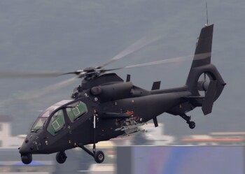 Initialement désigné Harbin Z-19 cet aéronef reprenait l’architecture générale des hélicoptères de combat. Celle-ci est connue depuis les années 1960 et l’apparition aux États-Unis du Bell AH-1 Cobra : fuselage étroit, poste de pilotage biplace en tandem, moignons de voilures pour l’accueil de l’armement, et train d’atterrissage renforcé. Mais un point trahissait les origines françaises de l’hélicoptère chinois via l’Aérospatiale SA.365 Dauphin 2. Ce nouveau Z-19 conservait la poutre de queue et le rotor caréné type Fenestron du WZ-9. La motorisation retenue fut la turbine Zhuzou WZ-8, qui est en fait une Turbomeca Arriel de facture française construite localement sous licence.