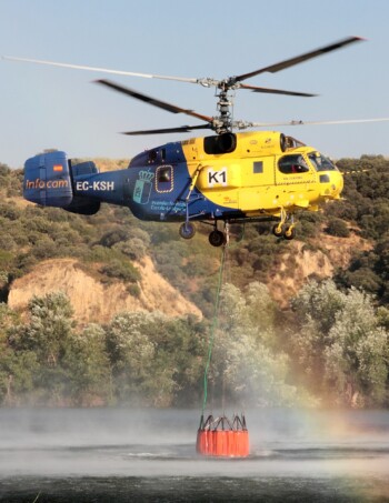 Pourtant en 1995 la milice moscovite, la police locale en fait, passa commande auprès de Kamov pour vingt-cinq exemplaires du Ka-32A. En fait les dix-huit premières machines en étaient, les sept dernières étant des Ka-32T adaptés aux opérations spéciales et notamment à la dépose de commandos antiterroristes. La Russie naissante avait besoin d’aéronefs nouveaux, le Ka-32 serait de ceux-ci. Trois sous versions furent alors développées. La première fut l’étonnant Ka-32A1 dédié à la lutte contre les incendies et disposant d’une capacité d’emport de 5000 litres d’eau en soutes avec possibilité de disposer d’un canon à haute pression, engagé sur les incendies d’immeubles de grande hauteur. La deuxième fut le Ka-32A2 spécialement pensé pour les forces de l’ordre tandis que la troisième Ka-32A3 permettait le transport de six malades et/ou blessés sur brancards.